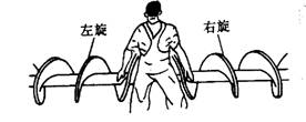 ⑵螺旋輸送機的螺旋葉片有左旋與右旋兩種旋向,決定螺旋旋向方法參見下圖所示。